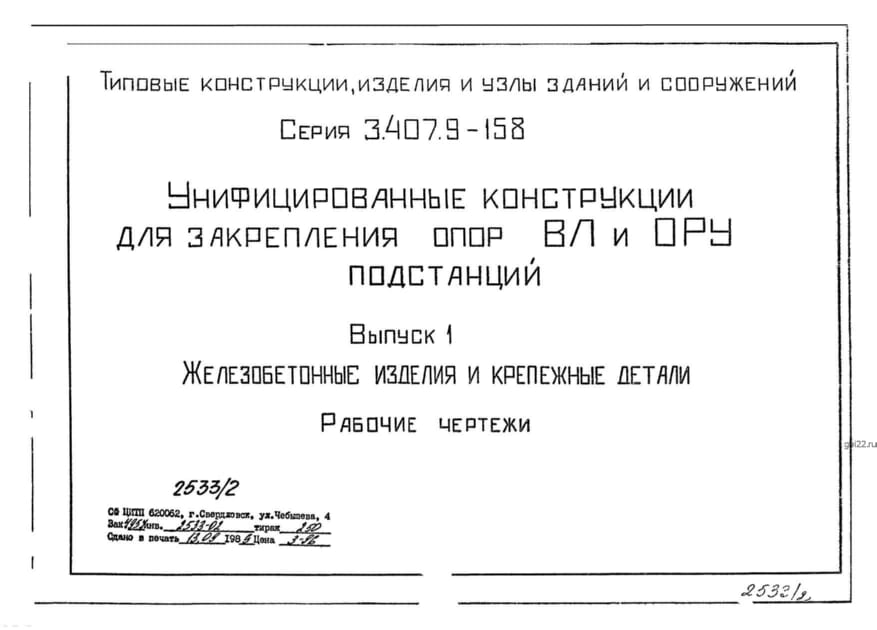 | Название стандарта | Унифицированные конструкции для закрепления опор ВЛ и ОРУ подстанций. |