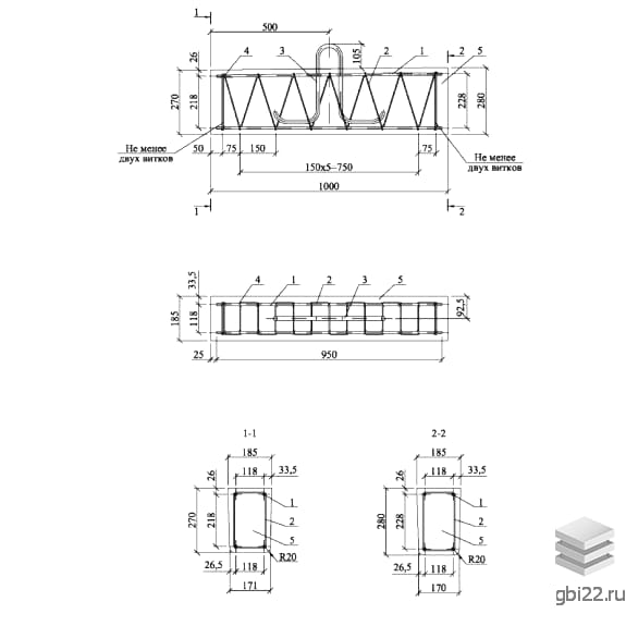 Анкера АВ 1 размеры: длина, мм.: 1000, ширина, мм.: 185, высота, мм.: 280, вес, кг.: 131, марка бетона: М350. Изделия относятся к категории Анкера железобетонные-Анкера и изготавливаются по технической документации согласно шифр 26.0085