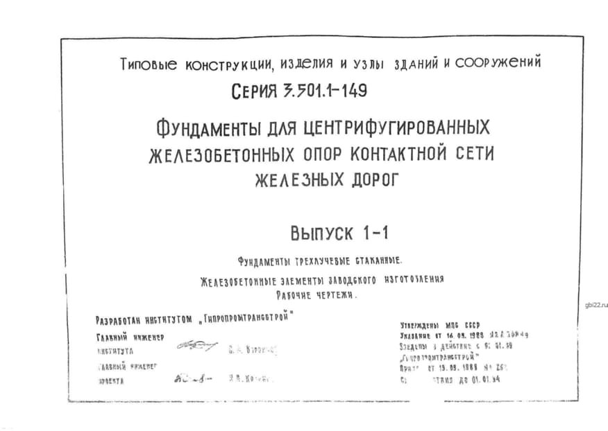 | Название стандарта | Фундаменты для центрифугированных железобетонных опор контактной сети железных дорог. |