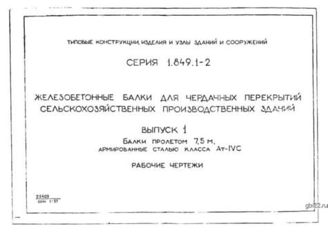 | Название стандарта | Железобетонные балки для чердачных перекрытий сельскохозяйственных производственных зданий. |