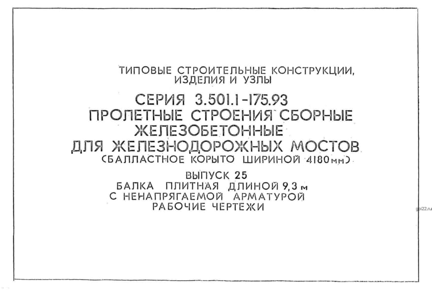 | Название стандарта | Пролетные строения сборные железобетонные для железнодорожных мостов (балластное корыто шириной 4180 мм). |