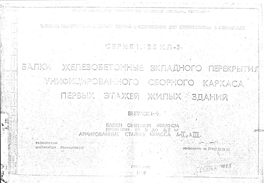 | Название стандарта | Балки железобетонные вкладного перекрытия унифицированного сборного каркаса первых этажей жилых зданий. |