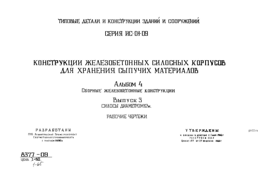 | Название стандарта | Конструкции железобетонных силосных корпусов для хранения сыпучих материалов. |