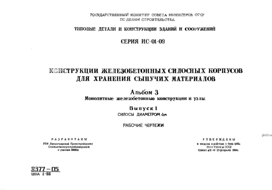 | Название стандарта | Конструкции железобетонных силосных корпусов для хранения сыпучих материалов. |