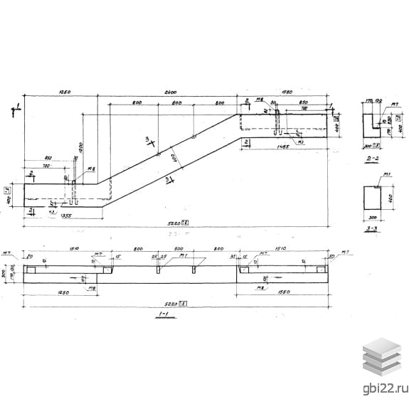 | Название стандарта | Лестницы с кирпичными стенами (высота марша 1,2 м, ширина 1,36 м). Марши, площадки, балки. |