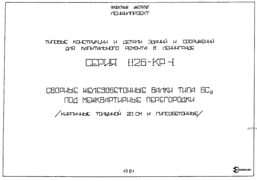 | Название стандарта | Сборные железобетонные балки типа БСу под межквартирные перегородки. |