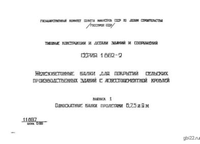 | Название стандарта | Железобетонные балки для покрытий сельских производственных зданий с асбестоцементной кровлей. |