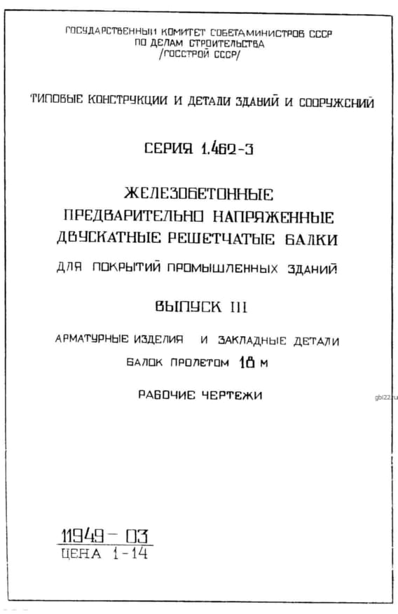 | Название стандарта | Железобетонные предварительно напряженные двускатные решетчатые балки для покрытий промышленных зданий. |