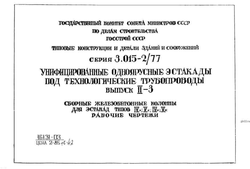 | Название стандарта | Унифицированные одноярусные эстакады под технологические трубопроводы. |