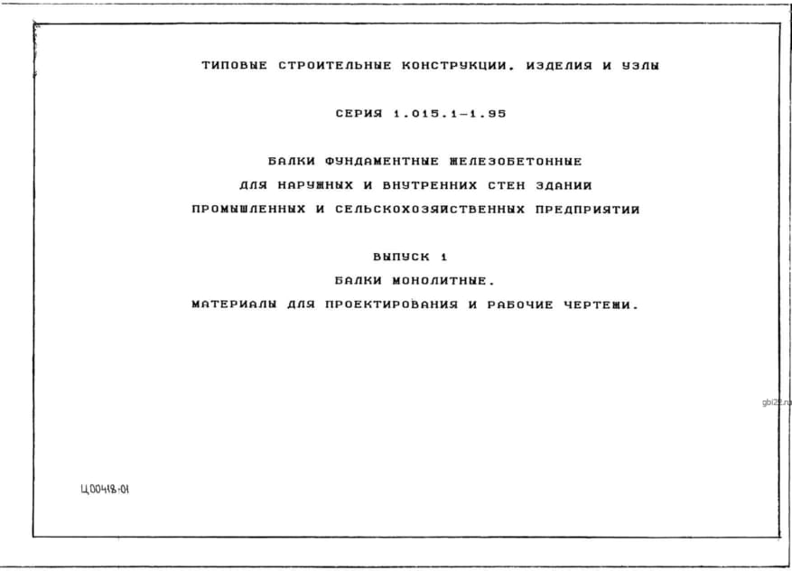Балки фундаментные железобетонные для наружных и внутренних стен зданий промышленных и сельскохозяйственных предприятий.