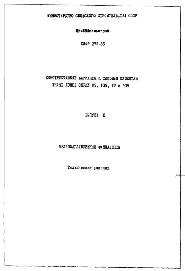 Конструктивные варианты к типовым проектам жилых домов серии 25, 135, 17 и 209.