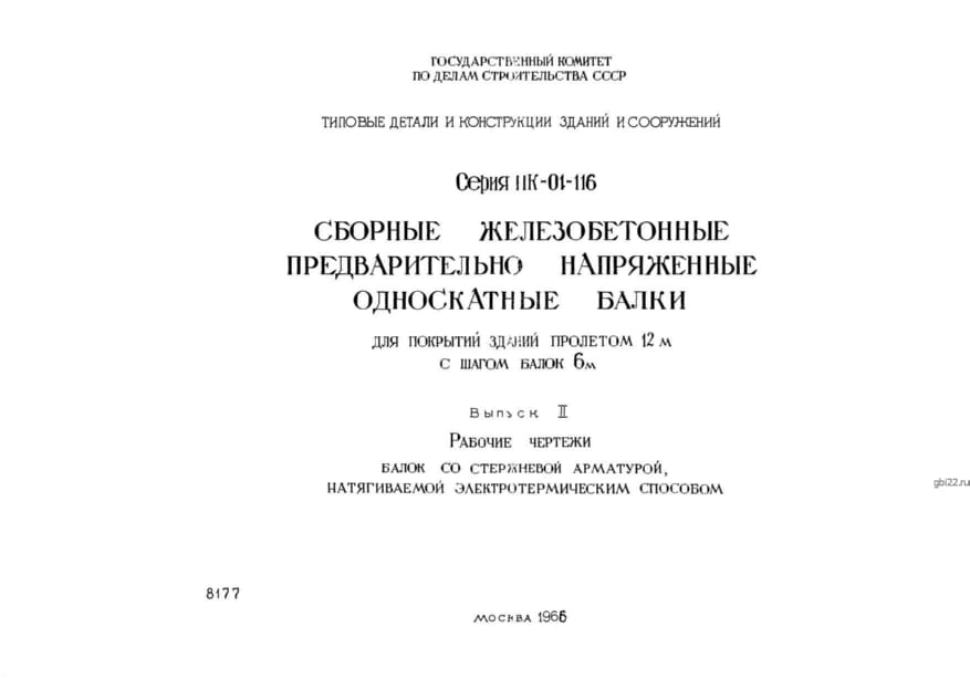 | Название стандарта | Сборные железобетонные предварительно напряженные односкатные балки для покрытий зданий пролетом 12 м с шагом балок 6 м. |