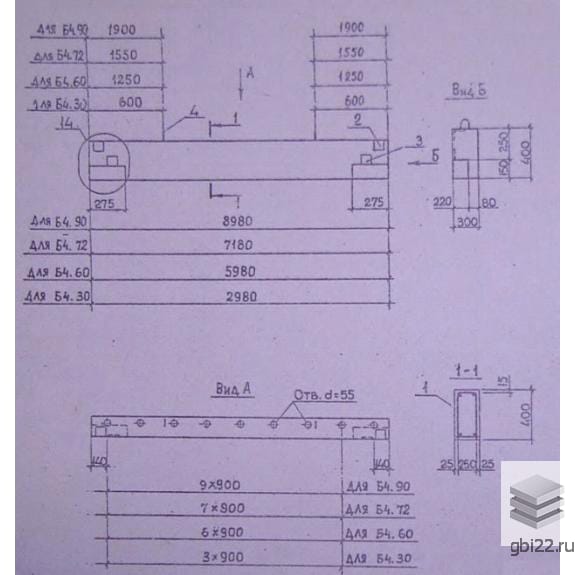 Балки Б4-30с – железобетонные элементы с прямоугольным сечением 300?400 мм, оснащенные: