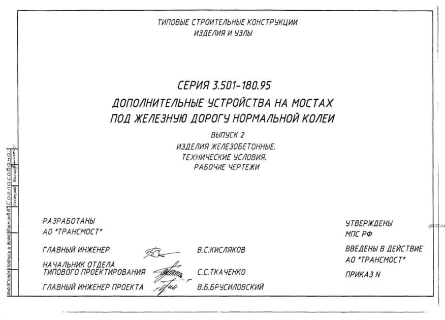 | Название стандарта | Дополнительные устройства на мостах под железную дорогу нормальной колеи. |