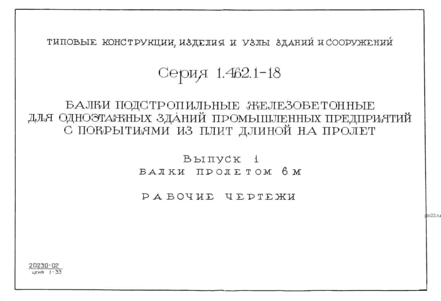 | Название стандарта | Балки подстропильные железобетонные для одноэтажных зданий промышленных предприятий с покрытиями из плит длиной на пролет. |
