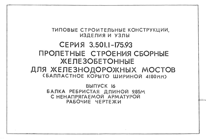 | Название стандарта | Пролетные строения сборные железобетонные для железнодорожных мостов (балластное корыто шириной 4180 мм). |
