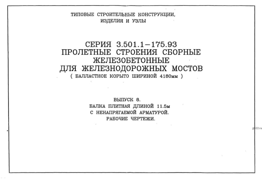 | Название стандарта | Пролетные строения сборные железобетонные для железнодорожных мостов (балластное корыто шириной 4180 мм). |