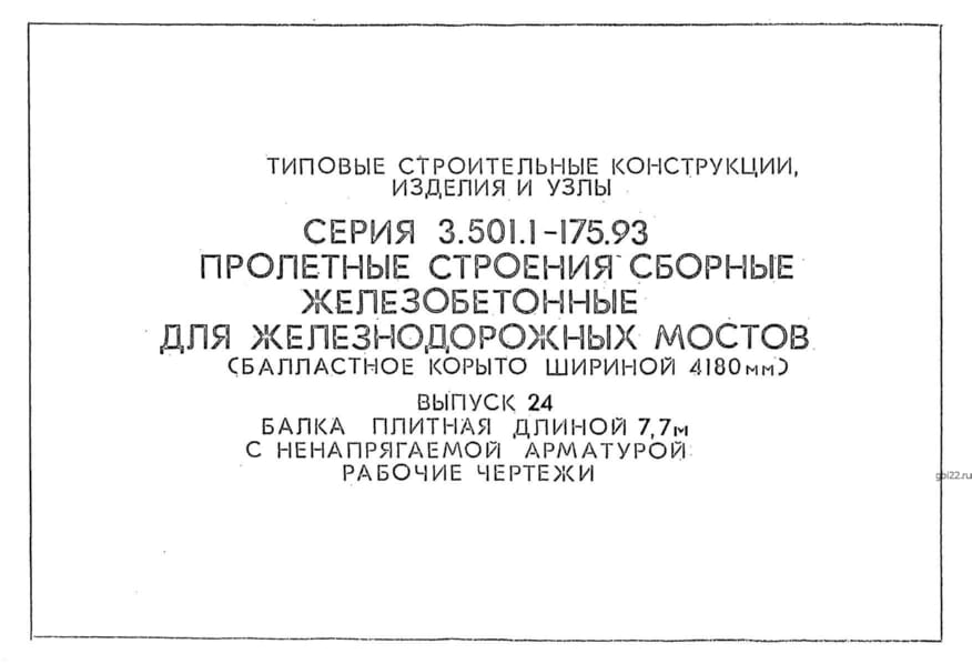 | Название стандарта | Пролетные строения сборные железобетонные для железнодорожных мостов (балластное корыто шириной 4180 мм). |