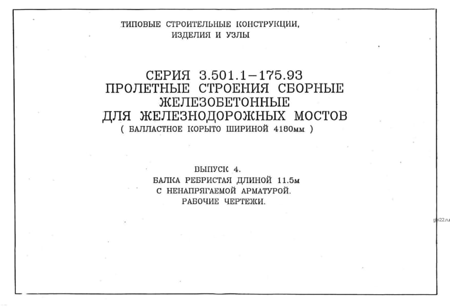 | Название стандарта | Пролетные строения сборные железобетонные для железнодорожных мостов (балластное корыто шириной 4180 мм). |