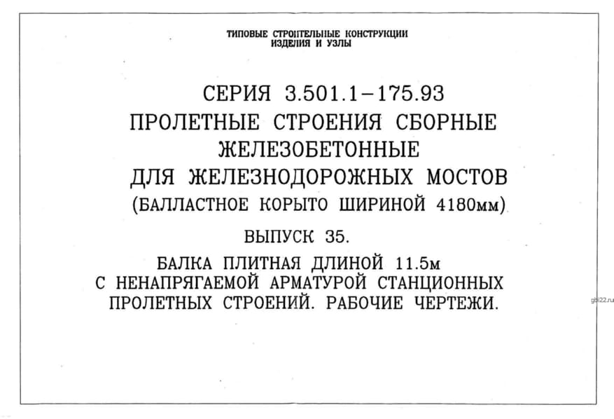 | Название стандарта | Пролетные строения сборные железобетонные для железнодорожных мостов (балластное корыто шириной 4180 мм). |