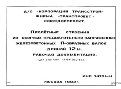 | Название стандарта | Пролетные строения из сборных предварительно напряженных железобетонных П-образных балок длиной 12м. |