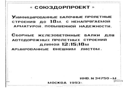 | Название стандарта | Сборные железобетонные балки для автодорожных пролетных строений длиной 12; 15; 18 м армированные внешним листом. |