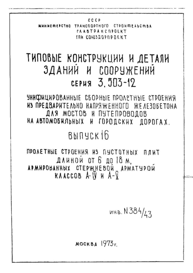 | Название стандарта | Унифицированные сборные пролетные строения из предварительно напряженного железобетона для мостов и путепроводов на автомобильных и городских дорогах. |