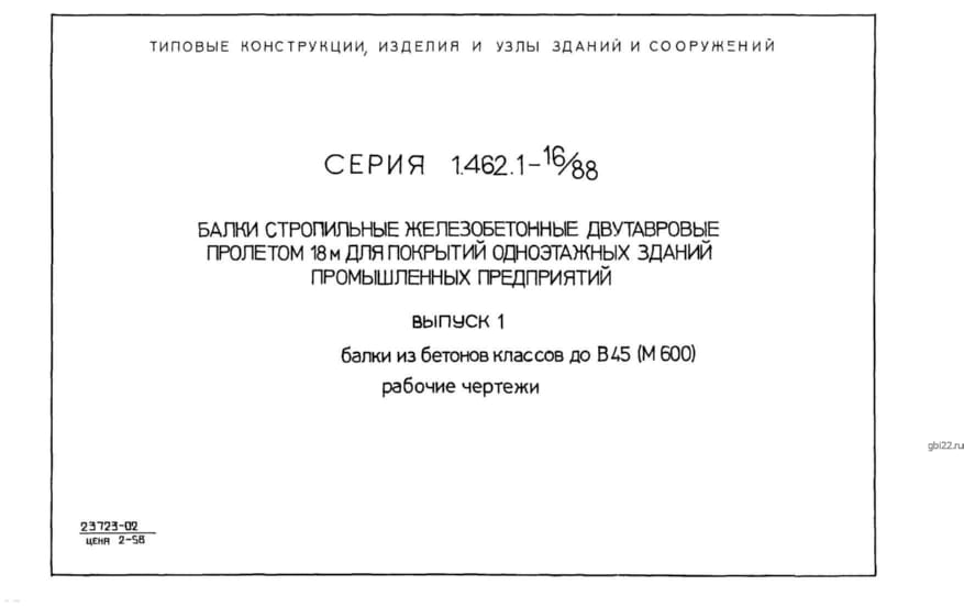 | Название стандарта | Балки стропильные железобетонные двутавровые пролетом 18м для покрытий одноэтажных зданий промышленных предприятий. |