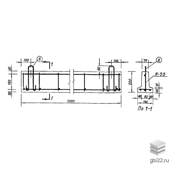 Балки тавровые БА 5 размеры: длина, мм.: 3980, ширина, мм.: 160, высота, мм.: 220, вес, кг.: 220, марка бетона: . Изделия относятся к категории Балки железобетонные-Балки тавровые с нижней полкой и изготавливаются по технической документации согласно серия ИИ 01-02