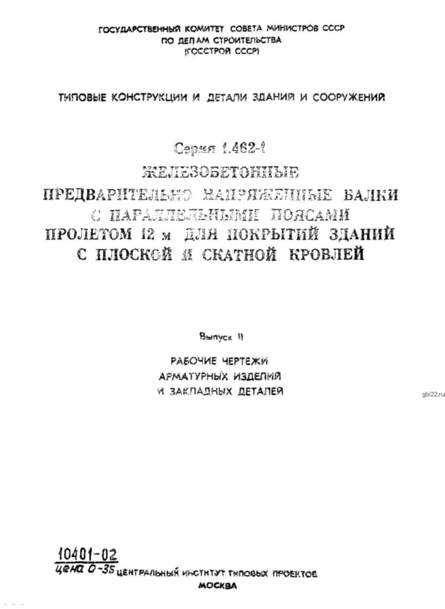 | Название стандарта | Железобетонные предварительно напряженные балки с параллельными поясами пролетом 12м для покрытий зданий с плоской и скатной кровлей. |