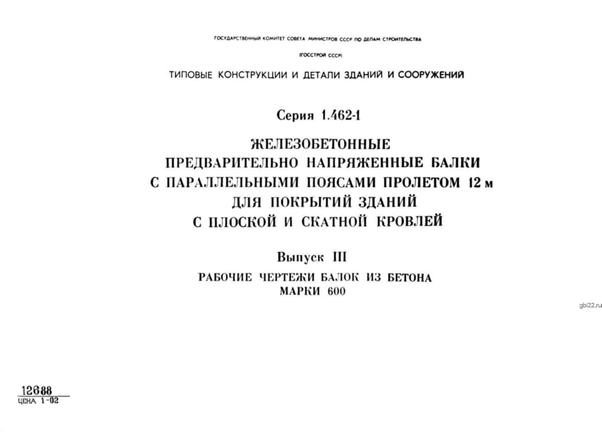 | Название стандарта | Железобетонные предварительно напряженные балки с параллельными поясами пролетом 12м для покрытий зданий с плоской и скатной кровлей. |