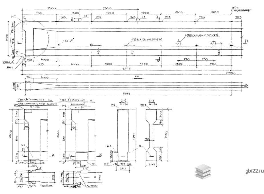 • Для пролётов свыше 8,96 м – предварительно напряжённой арматурой класса А-IV;