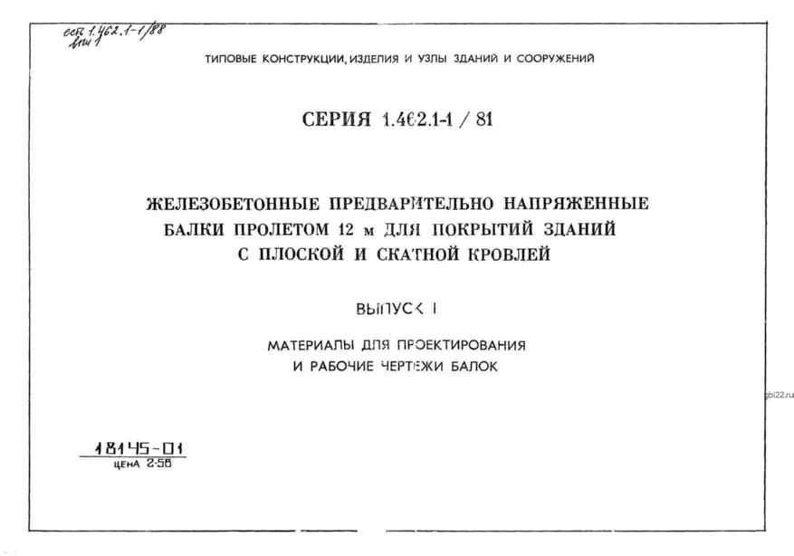| Название стандарта | Железобетонные предварительно напряженные балки пролетом 12 м для покрытий зданий с плоской и скатной кровлей. |