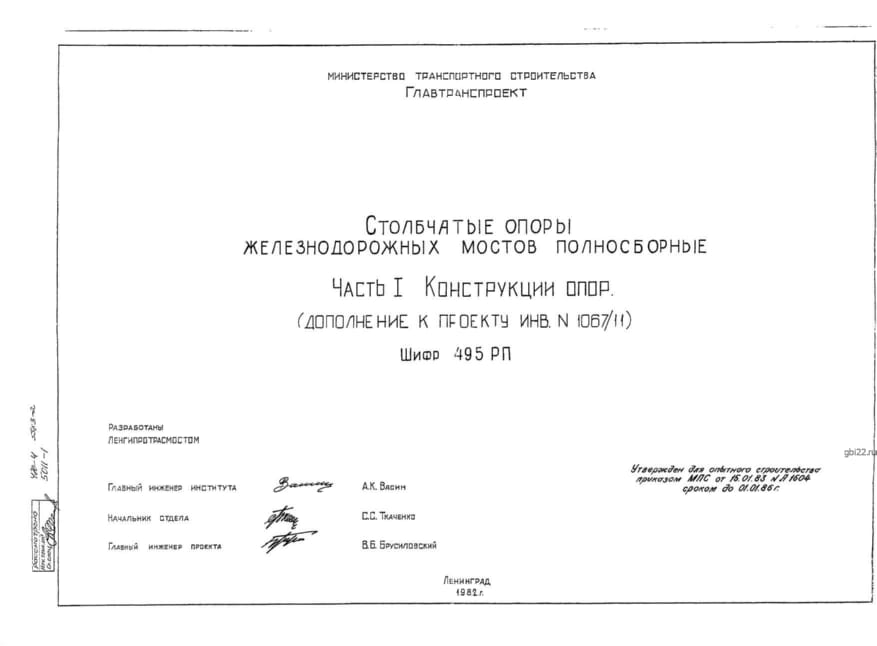 | Название стандарта | Проект столбчатых опор и фундаментов железнодорожных мостов пролетами до 33 м для Северной строительно-климатической зоны. |