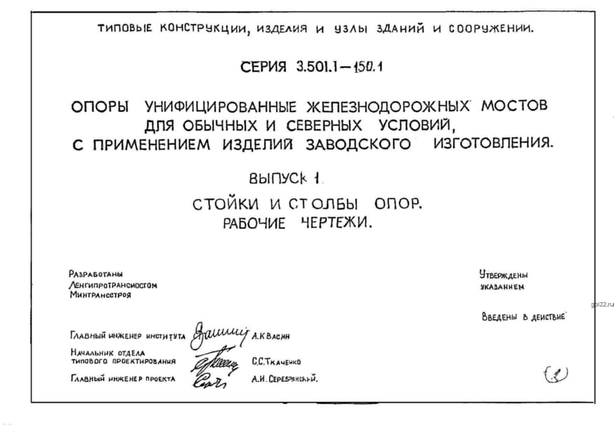 | Название стандарта | Опоры унифицированные железнодорожных мостов с применением изделий заводского изготовления. |