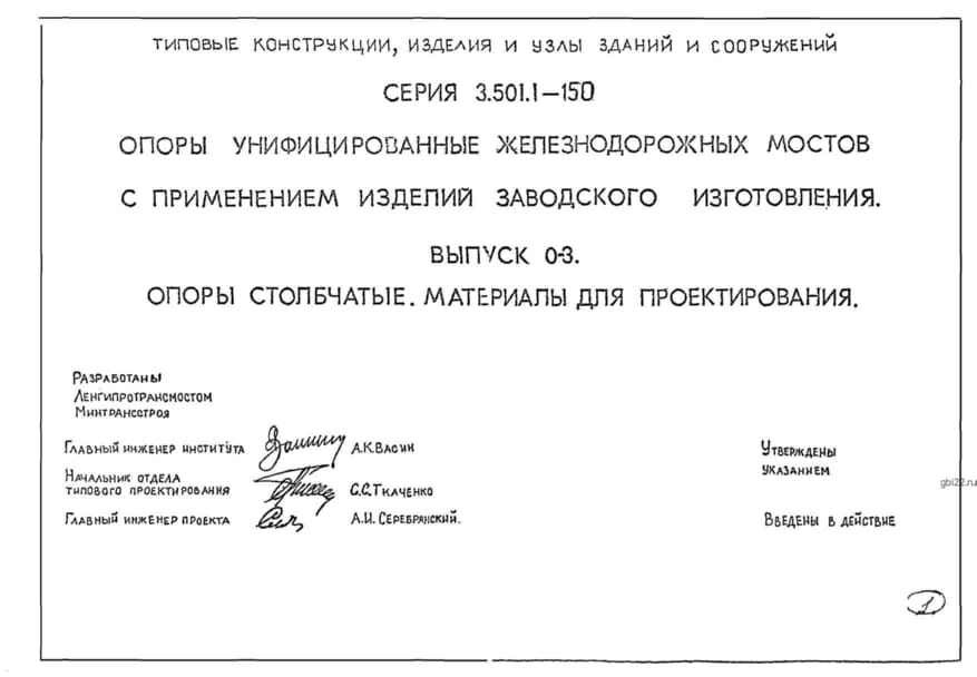 | Название стандарта | Опоры унифицированные железнодорожных мостов с применением изделий заводского изготовления. |