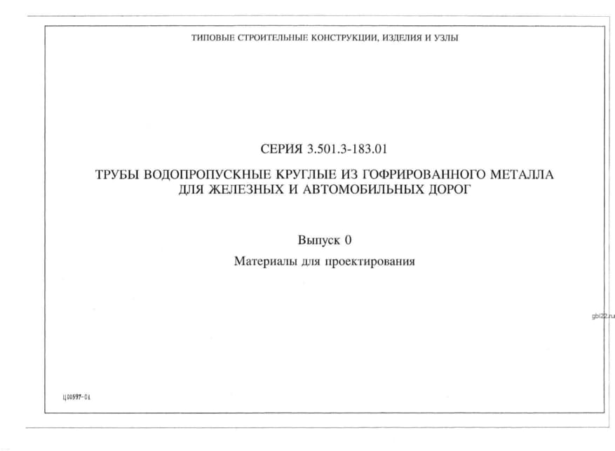 | Название стандарта | Трубы водопропускные круглые из гофрированного металла для железных и автомобильных дорог. |