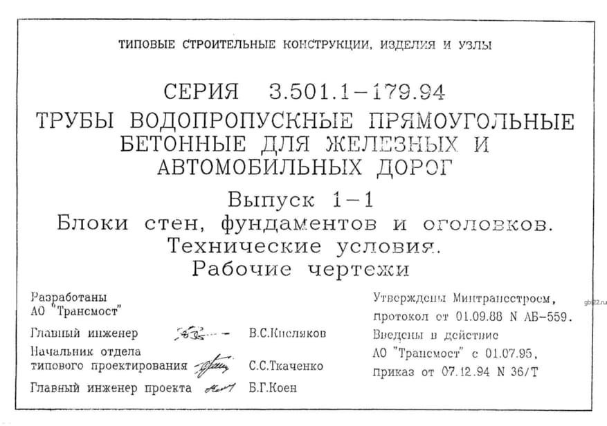 | Название стандарта | Трубы водопропускные прямоугольные бетонные для железных и автомобильных дорог. |