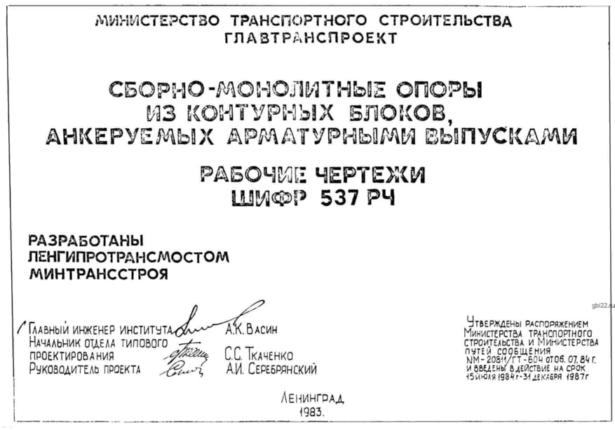 | Название стандарта | Сборно-монолитные опоры из контурных блоков, анкеруемых арматурными выпусками. |
