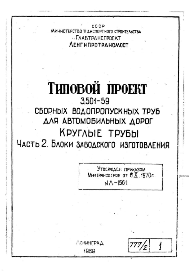 | Название стандарта | Типовой проект сборных водопропускных труб для автомобильных дорог. Круглые трубы. |
