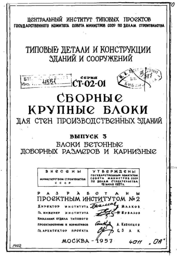 | Название стандарта | Сборные крупные блоки для стен производственных зданий. |