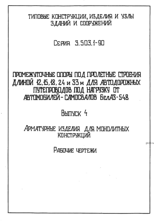 | Название стандарта | Промежуточные опоры под пролетные строения длиной 12, 15, 18, 24 и 33 м для автодорожных путепроводов под нагрузку от автомобилей-самосвалов БелАЗ-548. |