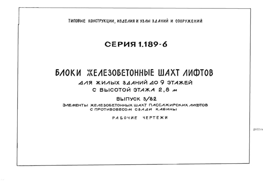 | Название стандарта | Блоки железобетонные шахт лифтов для жилых зданий до 9 этажей с высотой этажа 2,8 м. |