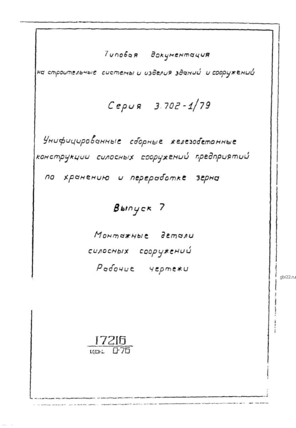 | Название стандарта | Унифицированные сборные железобетонные конструкции силосных сооружений предприятий по хранению и переработке зерна. |