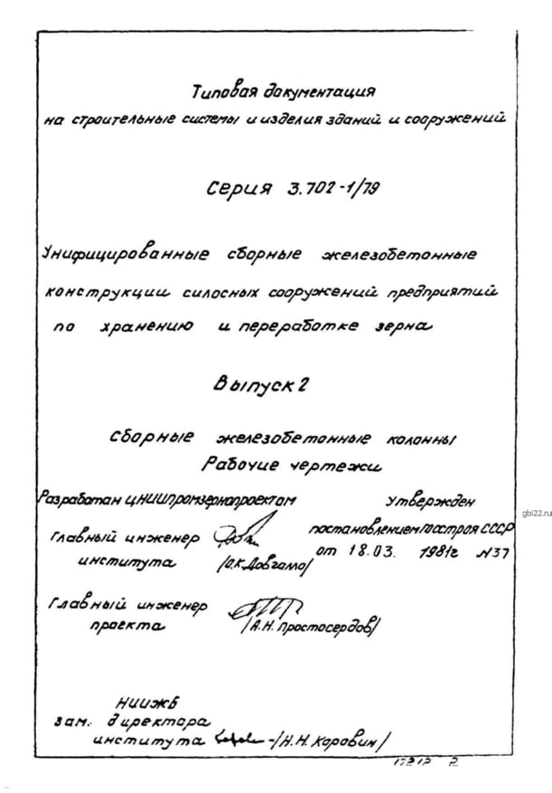 | Название стандарта | Унифицированные сборные железобетонные конструкции силосных сооружений предприятий по хранению и переработке зерна. |