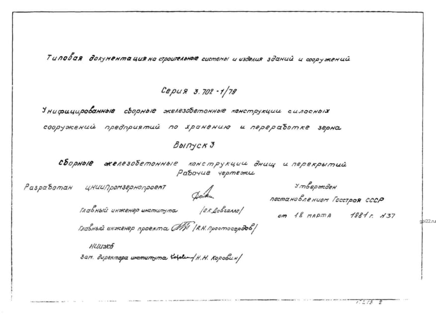 | Название стандарта | Унифицированные сборные железобетонные конструкции силосных сооружений предприятий по хранению и переработке зерна. |