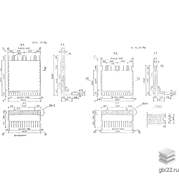 Железобетонный стеновой блок БС 1 ку (РК 2301-82) — это прочное прямоугольное изделие с торцевыми выступами и арматурными элементами для соединения с другими конструкциями. Применяется в комплексе с плитами перекрытия типа ВП для монтажа канализационных каналов и водосточных камер крупного сечения.