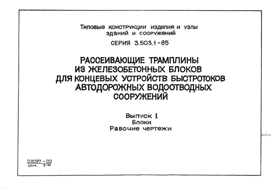 Рассеивающие трамплины из железобетонных блоков для концевых устройств быстротоков автодорожных водоотводных сооружений.