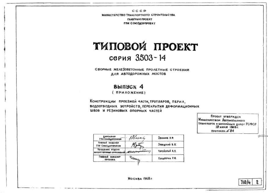| Название стандарта | Сборные железобетонные пролетные строения для автодорожных мостов. |