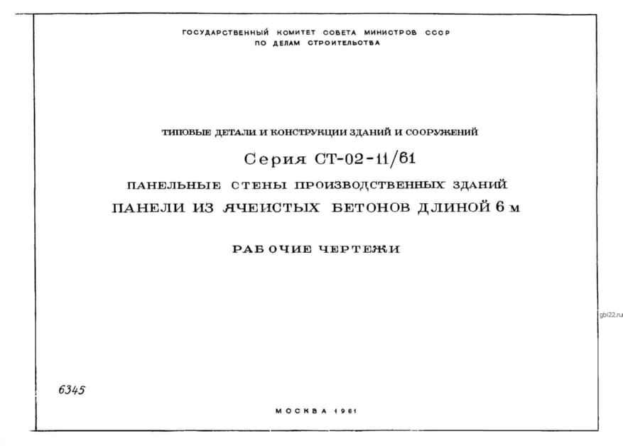 | Название стандарта | Панельные стены производственных зданий. Панели из ячеистых бетонов длиной 6 м. Рабочие чертежи. |